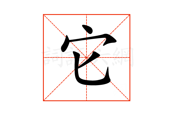 它,通用规范汉字,一级汉字,读音是(tā),宀部,共5画,象形字,上下结构,五行属火。