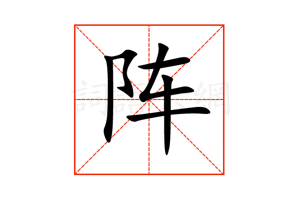 阵,通用规范汉字,一级汉字,序号0571,读音是(zhèn),阝部,共6画,会意字,左右结构,五行属火。