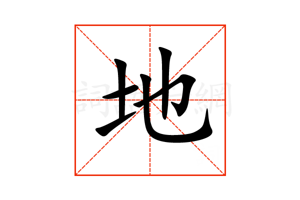 地,通用规范汉字,一级汉字,多音字,读音是(dì或de),土部,共6画,形声字,左右结构,五行属土。
