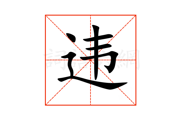〔违〕字的近义词是背,反义词是从、奉,异体字是違、𢾁、𢾝、𣪡、𨔻、𨕸。