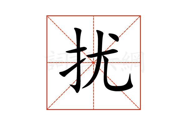 扰,通用规范汉字,一级汉字,序号0618,读音是(rǎo),扌部,共7画,形声字,左右结构,五行属水。