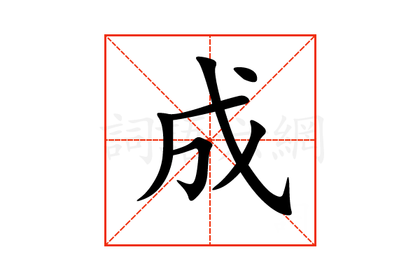 成,通用规范汉字,一级汉字,读音是(chéng),戈部,共6画,会意字,独体字,五行属金。