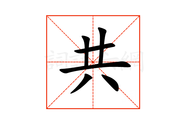 共,通用规范汉字,一级汉字,多音字,读音是(gòng或gōng),八部,共6画,象形字,上下结构,五行属木。
