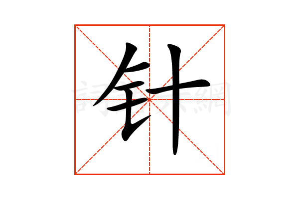 针,通用规范汉字,一级汉字,序号0757,读音是(zhēn),钅部,共7画,会意字,左右结构,五行属金。