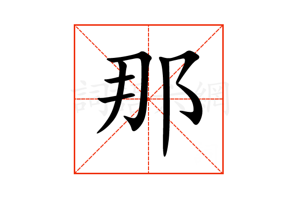 〔那〕字造字法是形声。小篆字形,从邑,冄( rǎn )声。邑与地名或行政区域有关。后省作“那”。①。本义是国名。《说文》:“西夷国。”本读 nuó。②指示代词。特指某个人、某个时间、某个地方或某个事物。不一定是远指之词,如“那件事你我心里都清楚。”。