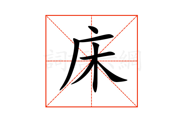 床,通用规范汉字,一级汉字,序号0831,读音是(chuáng),广部,共7画,会意字,半包围结构,五行属木。