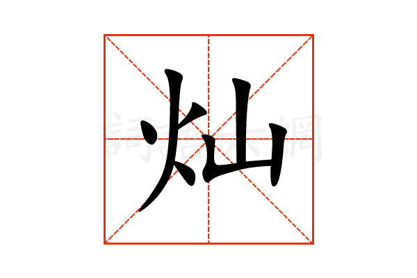 灿,通用规范汉字,一级汉字,序号0852,读音是(càn),火部,共7画,形声字,左右结构,五行属火。