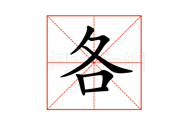〔各〕字是上下结构,可拆字为“夂、口”或“夊、口”,五行属木。