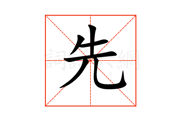 先,通用规范汉字,一级汉字,读音是(xiān),儿部,共6画,会意字,上下结构,五行属金。