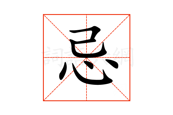 忌,通用规范汉字,一级汉字,序号0910,读音是(jì),心部,共7画,形声字,上下结构,五行属木。
