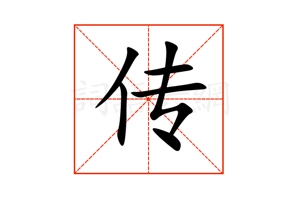 传,通用规范汉字,一级汉字,多音字,读音是(chuán或zhuàn),亻部,共6画,形声字,左右结构,五行属火。