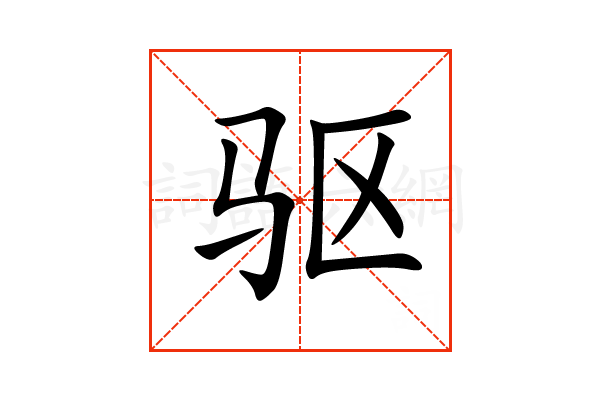 驱,通用规范汉字,一级汉字,序号0930,读音是(qū),马部,共7画,形声字,左右结构,五行属木。