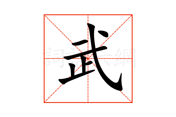 〔武〕字是半包围结构,可拆字为“弋、一、止”,五行属水。