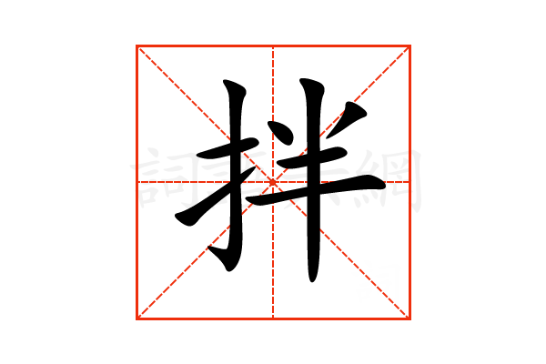 拌,通用规范汉字,一级汉字,序号0984,多音字,读音是(bàn 或 pàn),扌部,共8画,形声字,左右结构,五行属水。
