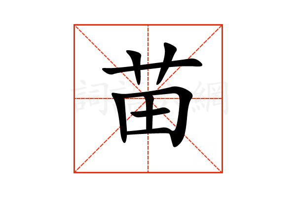 苗,通用规范汉字,一级汉字,序号1005,读音是(miáo),艹部,共8画,会意字,上下结构,五行属水。