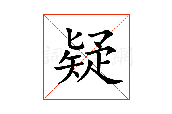 疑,通用规范汉字,一级汉字,序号3136,多音字,读音是(yí 或 nǐ),疋部,共14画,形声字,左右结构,五行属木。
