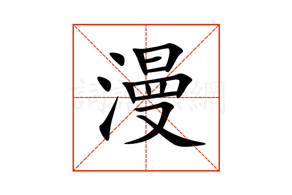 漫,通用规范汉字,一级汉字,序号3164,读音是(màn),氵部,共14画,形声字,左右结构,五行属水。