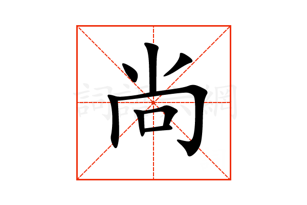 尚,通用规范汉字,一级汉字,序号1075,读音是(shàng),小部,共8画,会意字,上下结构,五行属金。