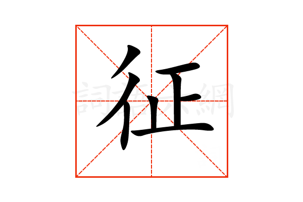 征,通用规范汉字,一级汉字,序号1159,读音是(zhēng),彳部,共8画,形声字,左右结构,五行属火。