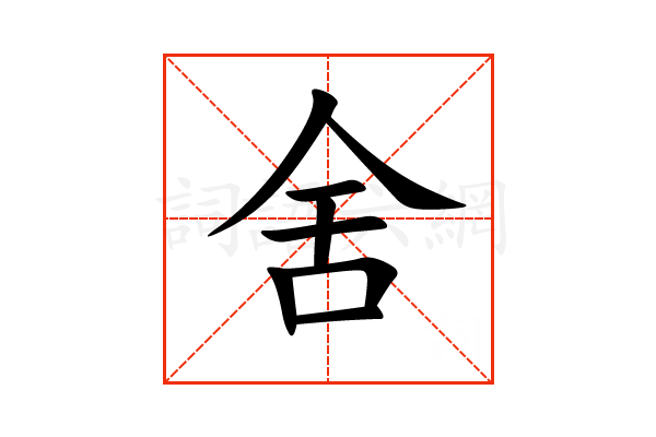 〔舍〕字是上下结构,可拆字为“人、舌”或“𫢉、口”或“𠆢、舌”,五行属金。