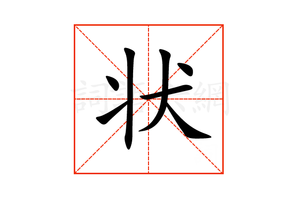 状,通用规范汉字,一级汉字,读音是(zhuàng),丬部,共7画,形声字,左右结构,五行属水。
