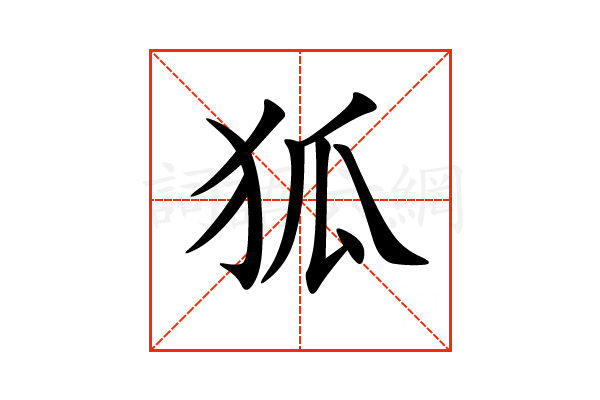 〔狐〕字造字法是形声。从犬,瓜声。本义是狐狸。
