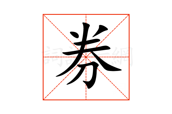 券,通用规范汉字,一级汉字,序号1230,多音字,读音是(quàn 或 xuàn),刀部,共8画,形声字,上下结构,五行属木。