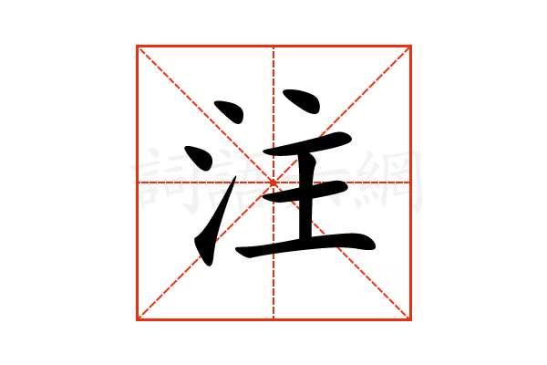 注,通用规范汉字,一级汉字,序号1252,读音是(zhù),氵部,共8画,形声字,左右结构,五行属水。