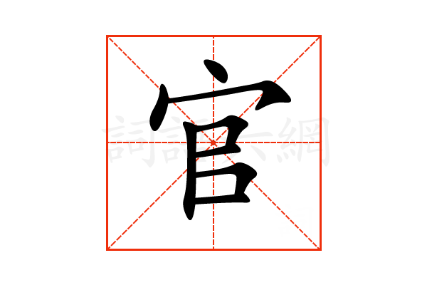 官,通用规范汉字,一级汉字,序号1281,读音是(guān),宀部,共8画,会意字,上下结构,五行属木。