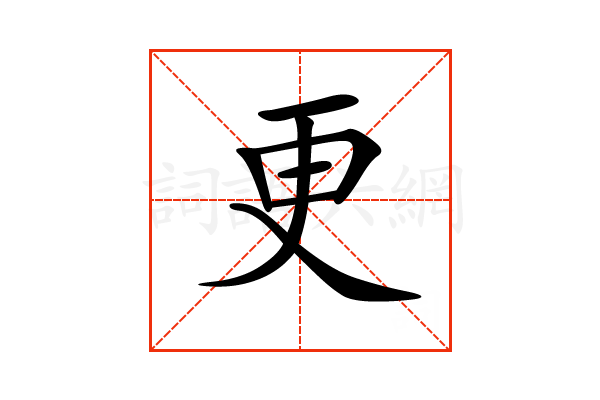 更,通用规范汉字,一级汉字,多音字,读音是(gēng或gèng),一部,共7画,会意字,独体字,五行属木。