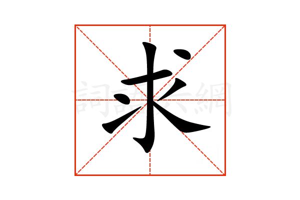 求,通用规范汉字,一级汉字,读音是(qiú),一部,共7画,象形字,独体字,五行属火。