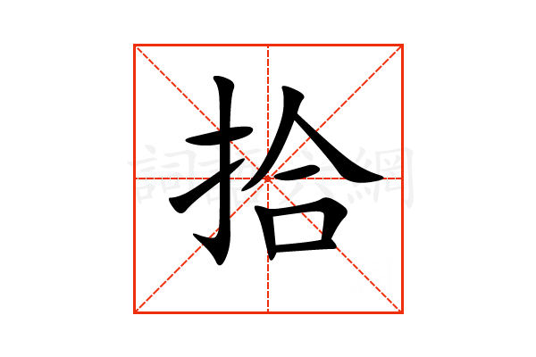 拾,通用规范汉字,一级汉字,序号1386,多音字,读音是(shí 或 shè),扌部,共9画,形声字,左右结构,五行属金。