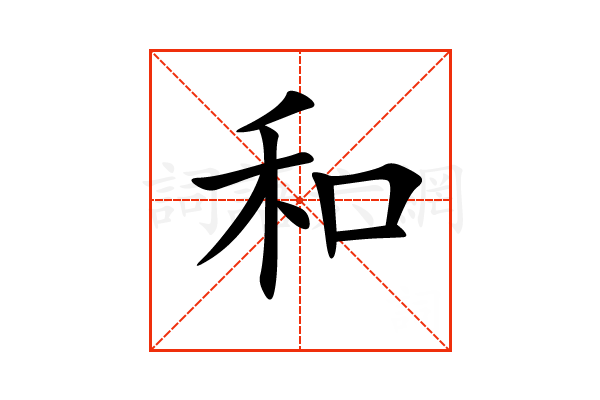 和,通用规范汉字,一级汉字,多音字,读音是(hé、hè、huó、huò或hú),口部,共8画,形声字,左右结构,五行属水。