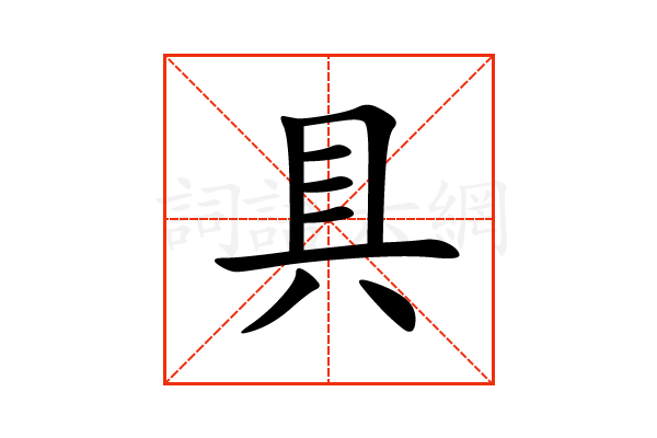 具,通用规范汉字,一级汉字,读音是(jù),八部,共8画,会意字,上下结构,五行属木。
