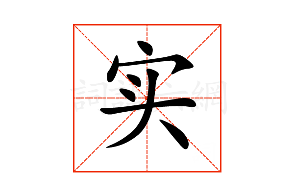 实,通用规范汉字,一级汉字,读音是(shí),宀部,共8画,会意字,上下结构,五行属金。