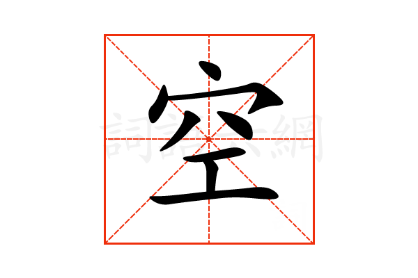 空,通用规范汉字,一级汉字,多音字,读音是(kōng、kòng或kǒng),穴部,共8画,形声字,上下结构,五行属木。