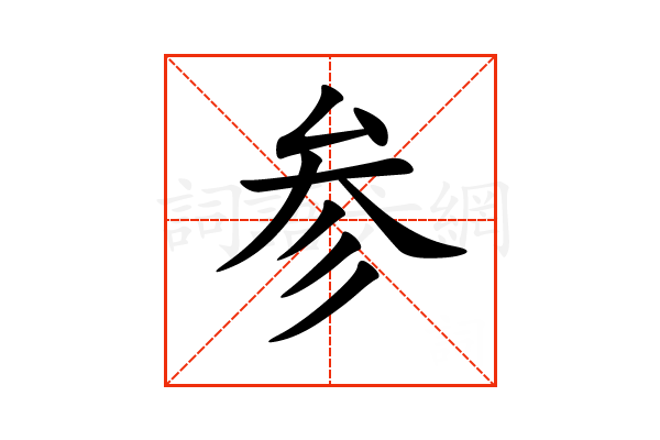 参,通用规范汉字,一级汉字,多音字,读音是(cān、shēn、cēn或sān),厶部,共8画,形声字,上下结构,五行属金。