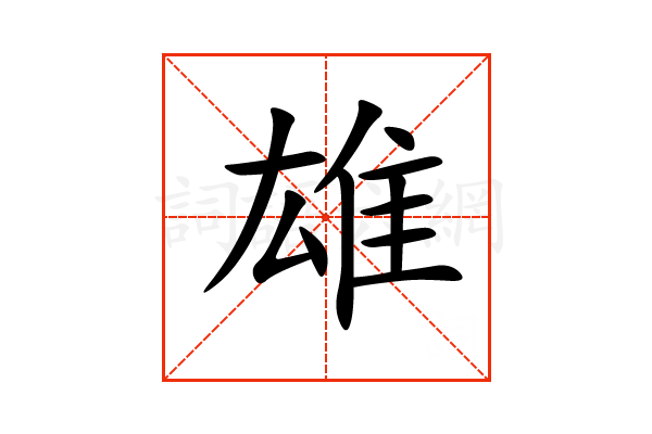 雄,通用规范汉字,一级汉字,序号2596,读音是(xióng),隹部,共12画,形声字,左右结构,五行属水。