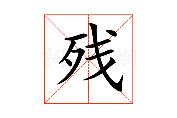 残,通用规范汉字,一级汉字,序号1460,读音是(cán),歹部,共9画,形声字,左右结构,五行属金。
