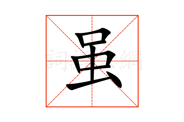 虽,通用规范汉字,一级汉字,序号1502,读音是(suī),虫部,共9画,形声字,上下结构,五行属金。