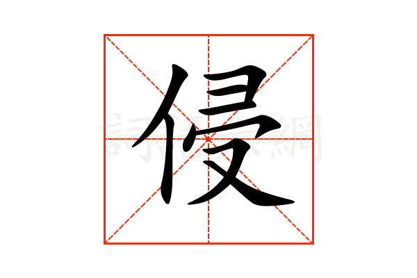 侵,通用规范汉字,一级汉字,序号1574,读音是(qīn),亻部,共9画,会意字,左右结构,五行属金。