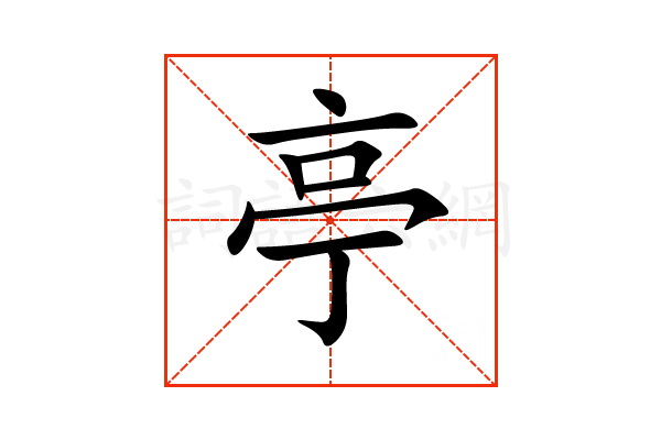亭,通用规范汉字,一级汉字,序号1620,读音是(tíng),亠部,共9画,象形字,上下结构,五行属火。