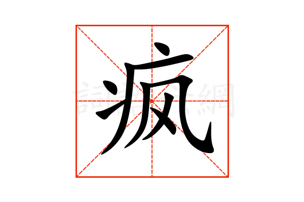 〔疯〕字是半包围结构,可拆字为“疒、风”,五行属水。