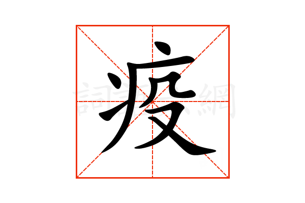 疫,通用规范汉字,一级汉字,序号1627,读音是(yì),疒部,共9画,形声字,半包围结构,五行属木。
