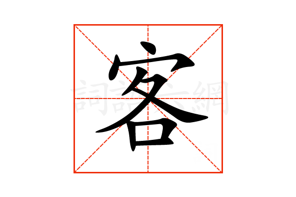 客,通用规范汉字,一级汉字,序号1703,读音是(kè),宀部,共9画,形声字,上下结构,五行属木。