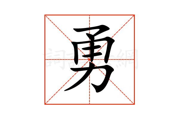 勇,通用规范汉字,一级汉字,序号1746,读音是(yǒng),力部,共9画,形声字,上下结构,五行属土。