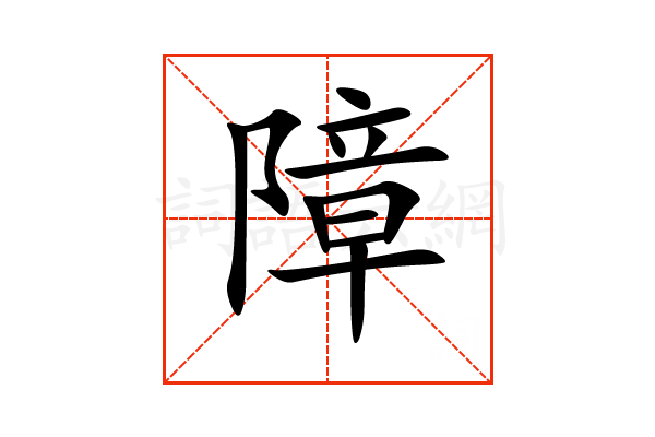 障,通用规范汉字,一级汉字,序号3038,读音是(zhàng),阝部,共13画,形声字,左右结构,五行属火。