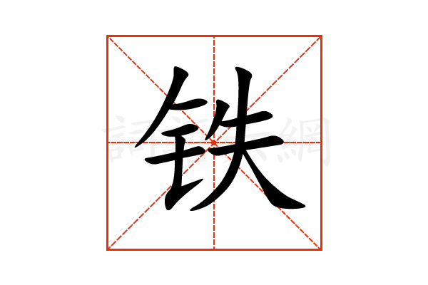 〔铁〕字造字法是形声。从金,臷( zhì )声。本义是化学元素。符号Fe。一种很重的可锻、有延展性和有磁性的、主要是两价和三价的金属元素,纯铁为银白色,但在潮湿空气中容易生锈。
