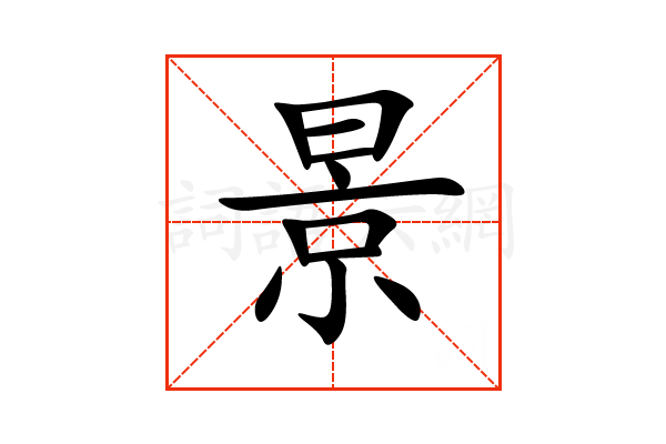 景,通用规范汉字,一级汉字,序号2626,多音字,读音是(jǐng 或 yǐng),日部,共12画,形声字,上下结构,五行属木。