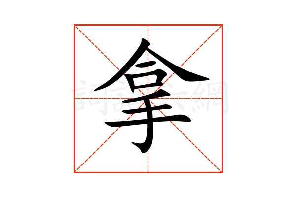 拿,通用规范汉字,一级汉字,序号1983,读音是(ná),手部,共10画,会意字,上下结构,五行属火。